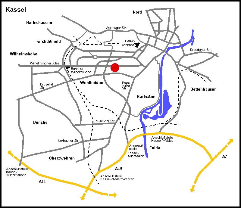 1,50€). From the railway station (Kassel Wilhelmshöhe) Take the train to Kassel – Wilhelmshöhe. When ariving at Kassel, take Tram 1 or 2 heading Holländische Straße or Tram 3 heading Ihringshäuser Straße. Exit at Murhardstraße – Universität. Use entrance C to enter the university building. Maps